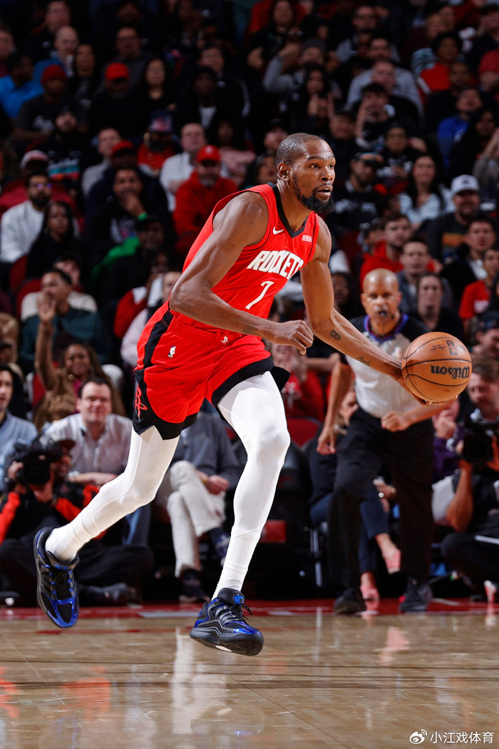 第二节火箭一度落后16分,之后反扑追分,可半场打完火箭仍60-70落后10分,上半场火箭全队3人得分上双,杜兰特、阿门和申京各自拿到12分,火箭三核半场合砍36分。